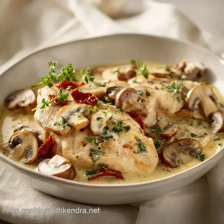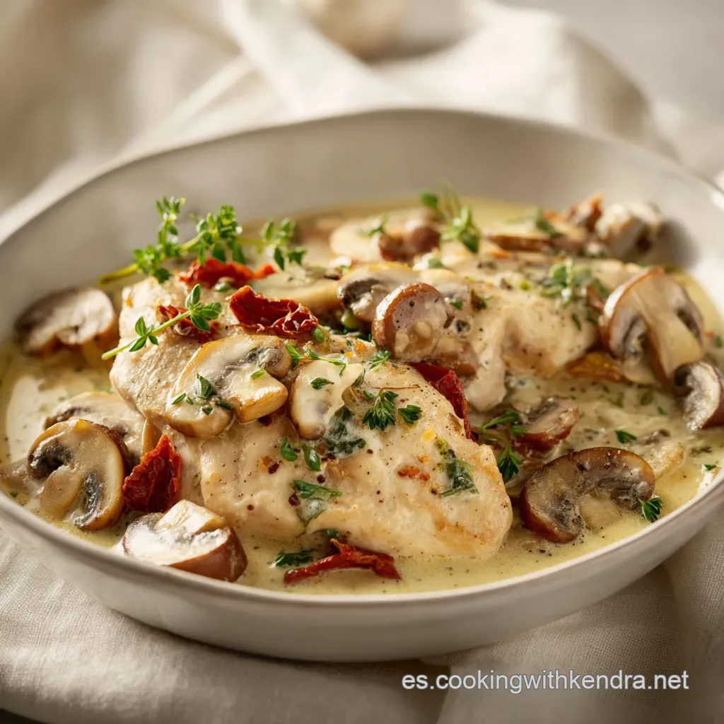 La combinación de la textura carnosa de los hongos con la suavidad del pollo crea un equilibrio que pocos platos logran con tan pocos elementos.