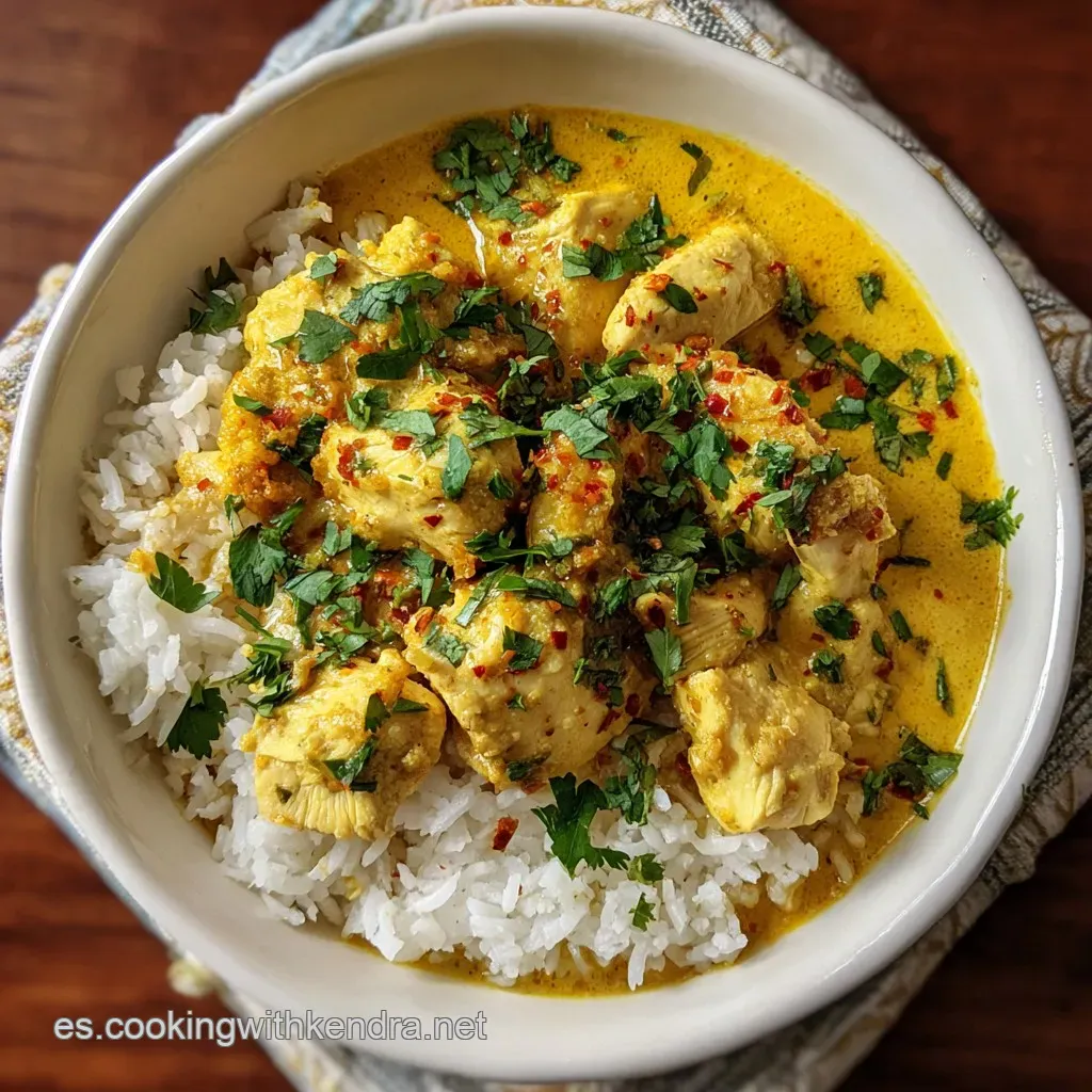 Aquí encontrarás la mejor receta de Pollo al Curry con Leche de Coco y Arroz que te va a encantar. Es una preparación pensada para quienes buscan ese contraste entre lo picante y lo dulce sin complicaciones.